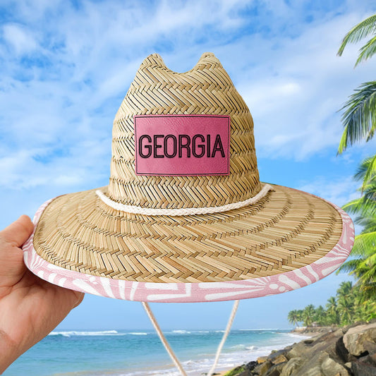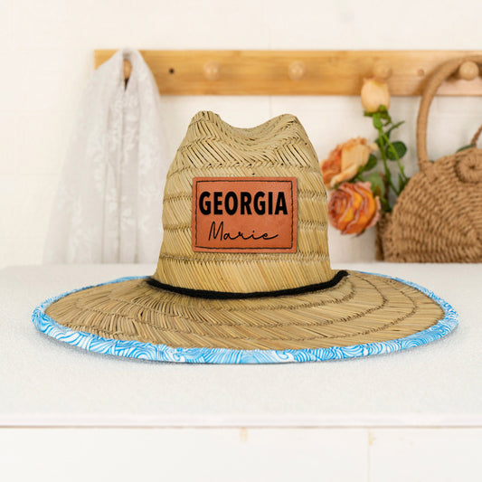 Personalized Kids Straw Hat with Name and Symbols Leather Patch Sun Hats for Baby Toddler Women Men