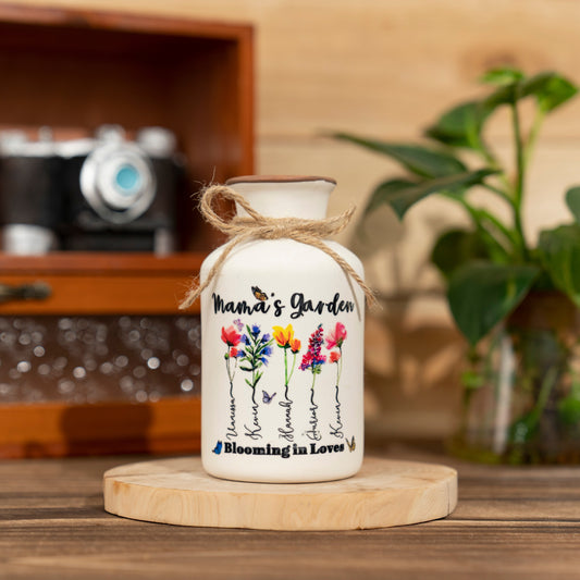 Custom Mom's Garden Birth Month Flower Vase with Kids Names