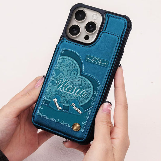 Personalized Grandma's Little Sweethearts Leather Wallet Phone Case Gift for Mom