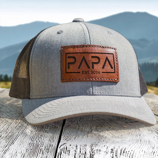Personalized PAPA Est Leather Patch Trucker Hat Father's Day Gift
