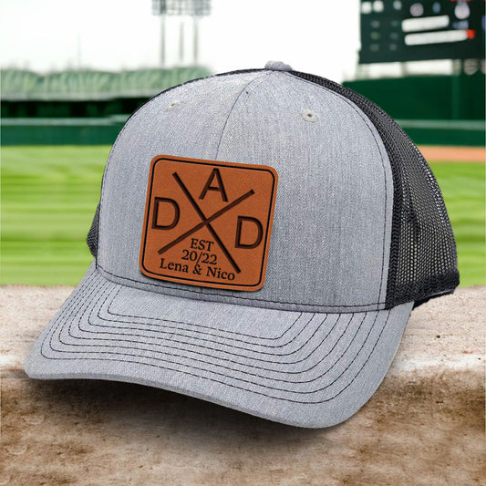 Personalized Dad Hat with Est and Kids Names Leather Patch Trucker Hat Father's Day Gift