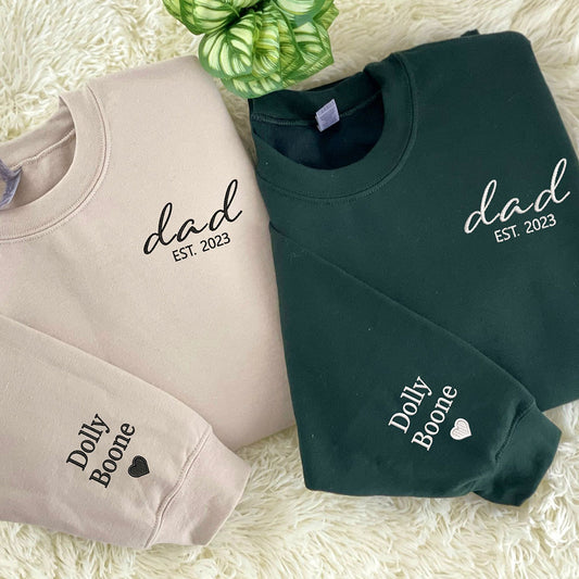 Personalized Embroidered Dad Est Sweatshirt with Kids Name on Sleeve