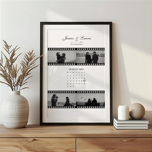 Personalized Couple Film Style Wall Art Photo Print With Calendar