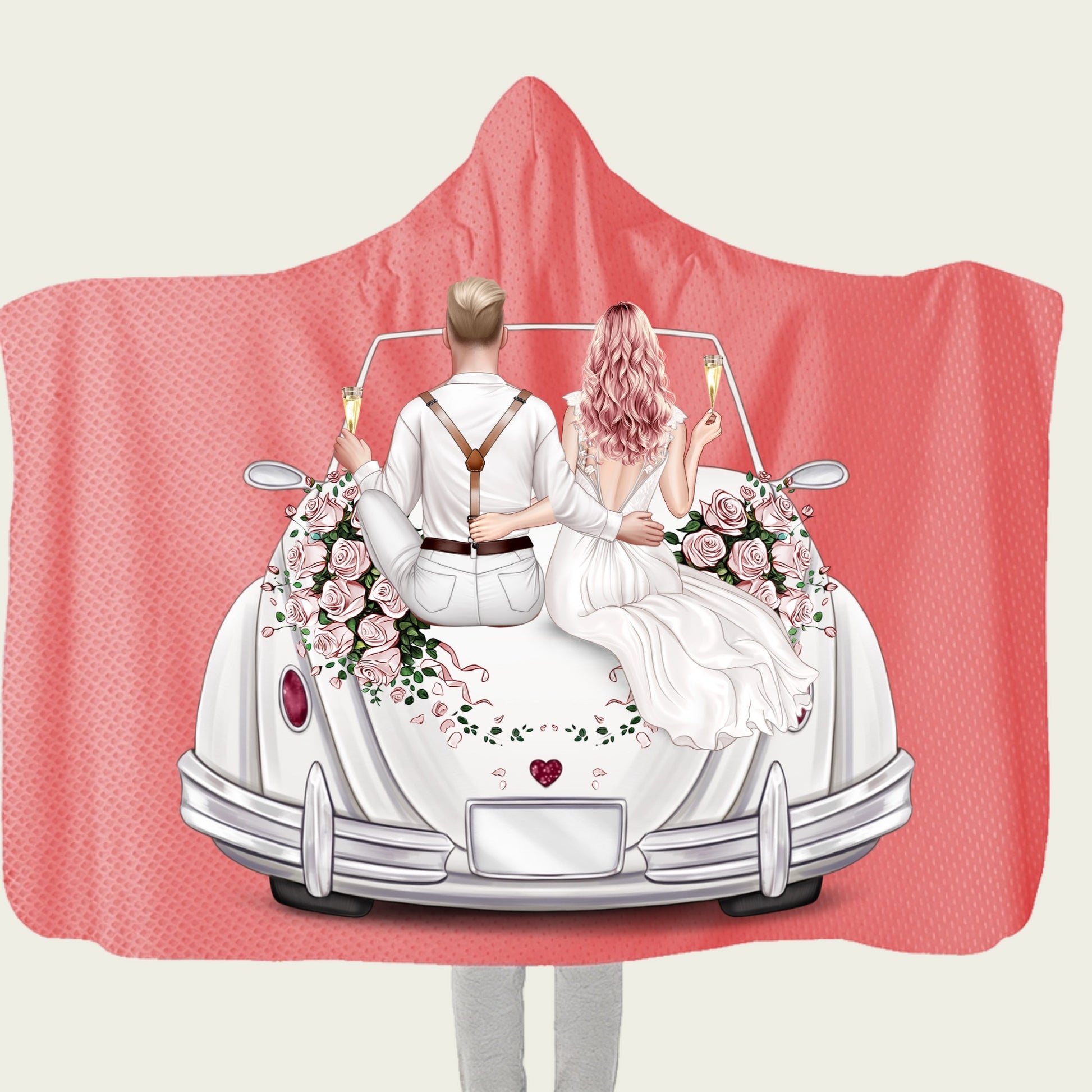 Personalized Couple Honeymoon Minky Fleece Blanket Cozy Romance Throw Hooded Blanket