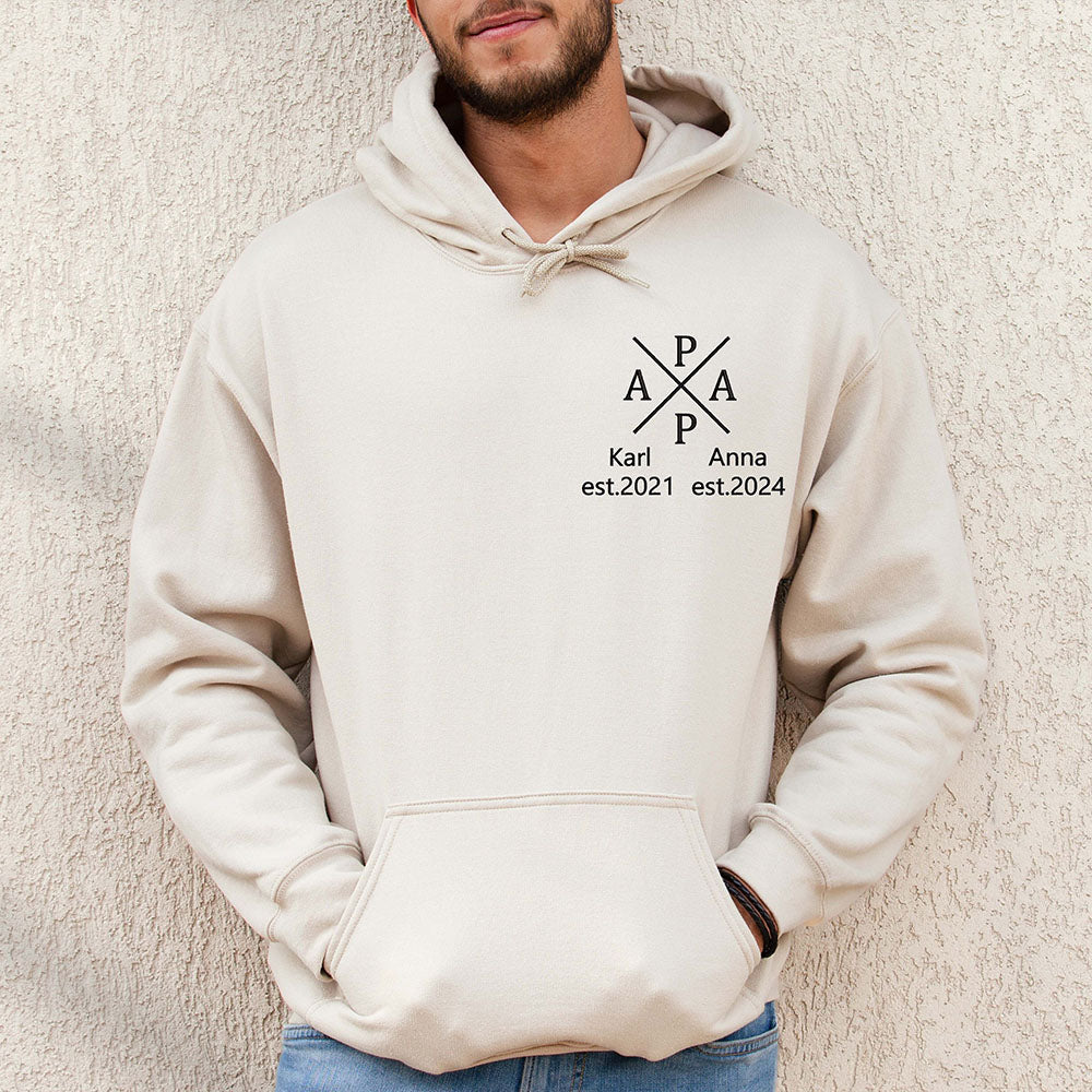 Personalized Embroidered PAPA Hoodie with Name and Year Father's Day Gift