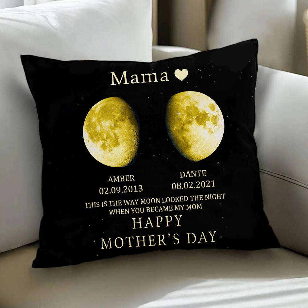 This moon phase throw pillow is a great gift for Motherâs Day, birthdays, or even as an anniversary gift with the moon phase from the night we met or the day you were born. Itâs a perfect keepsake to honor family milestones.