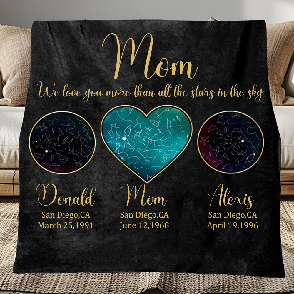Personalized Mom We Love You More Than All Stars in the Sky Blanket Star Map by Date Blanket Mother's Day Gift from Daughter